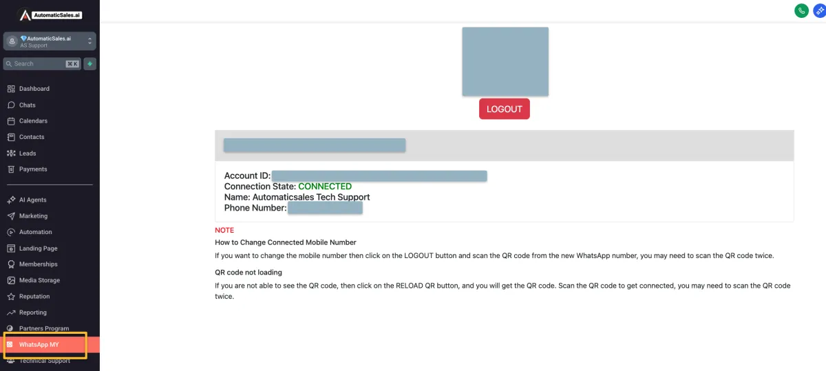 每一个Admin可以到各自的账号链接自己的WhatsApp